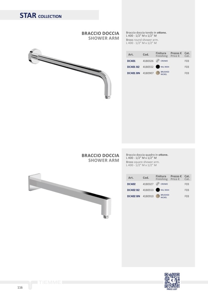 Braccio doccia quadro in o