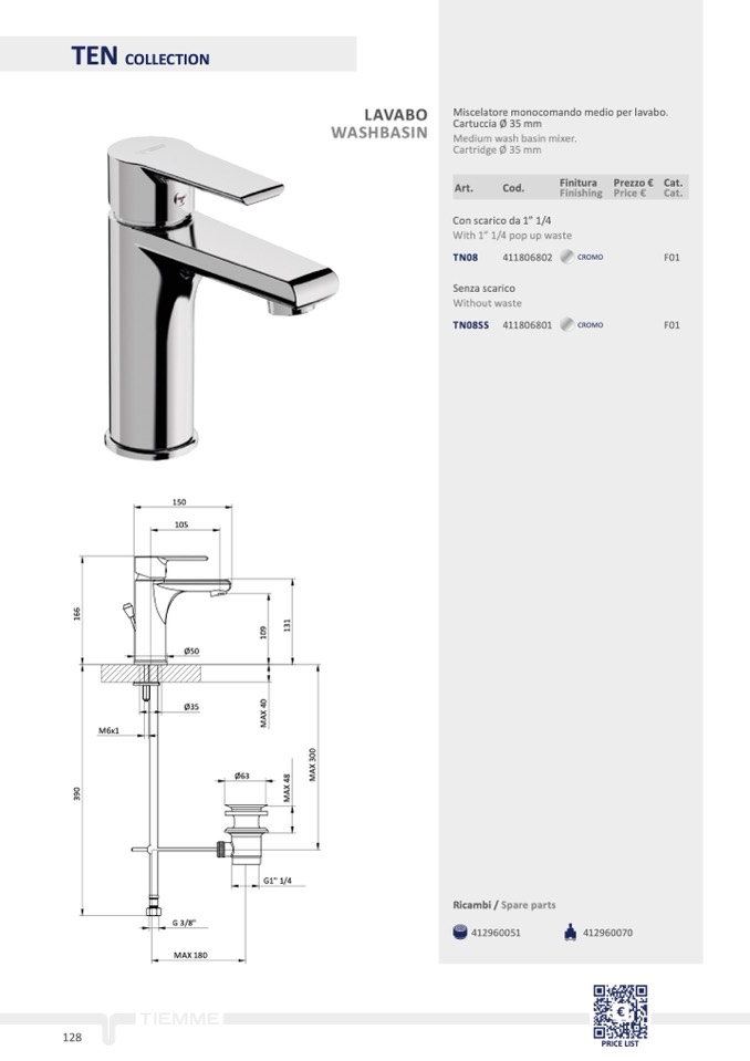 Miscelatore monocomando medio per lavabo.