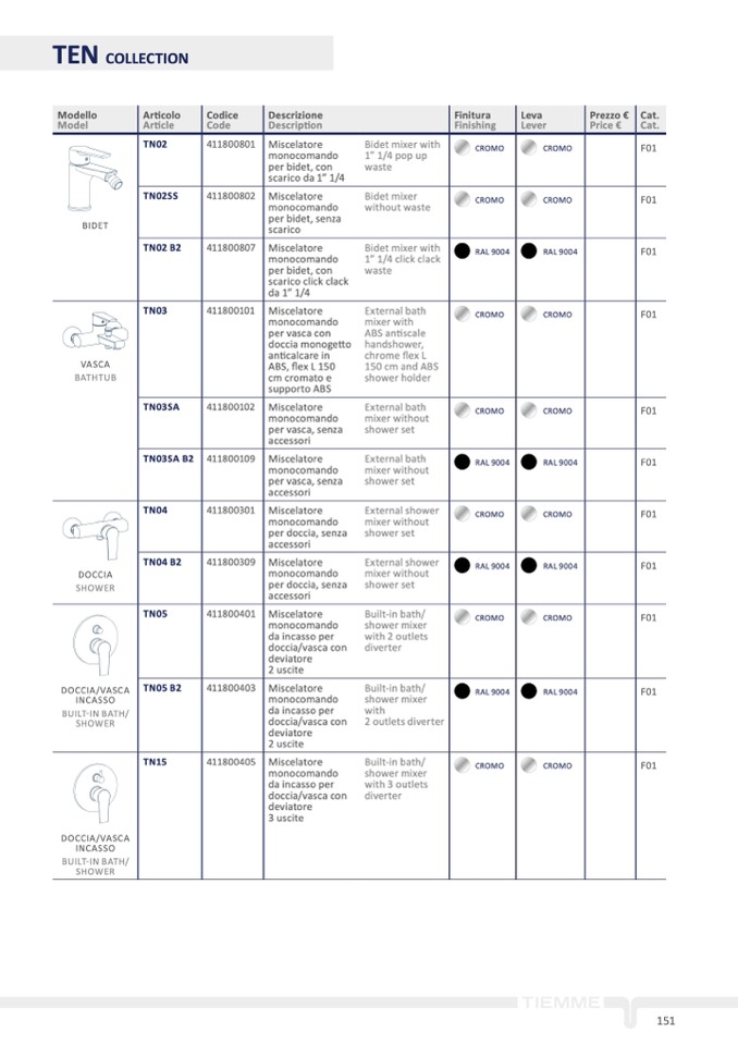 per doccia, senza