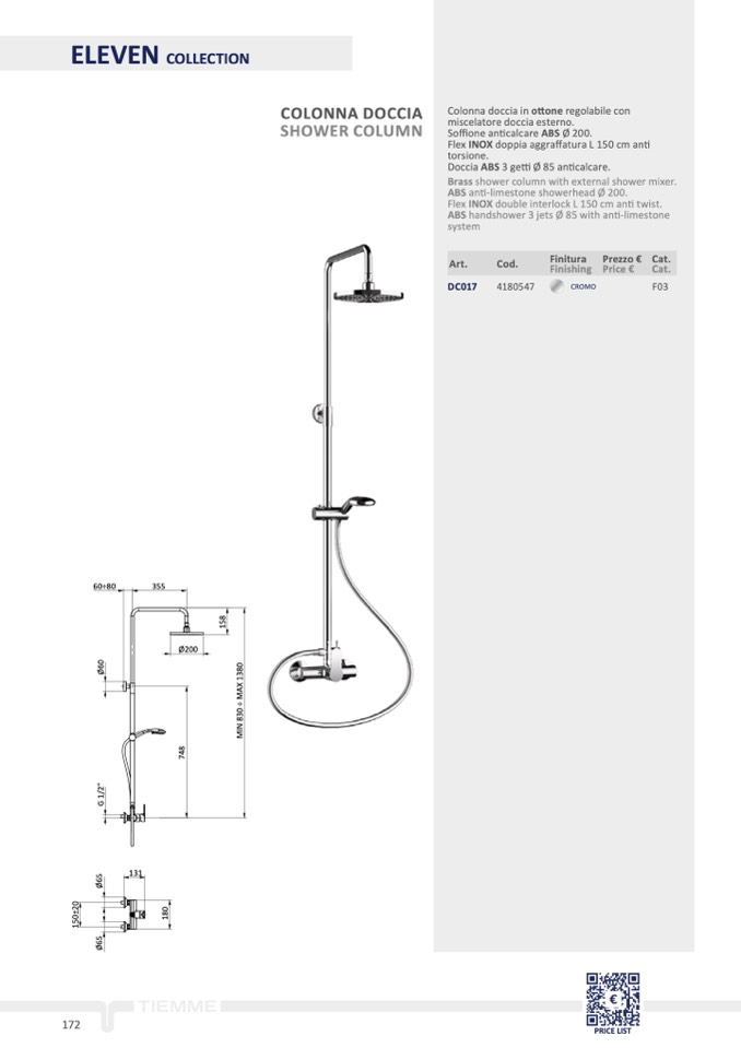 Doccia ABS 3 getti Ø 85 anticalcare.