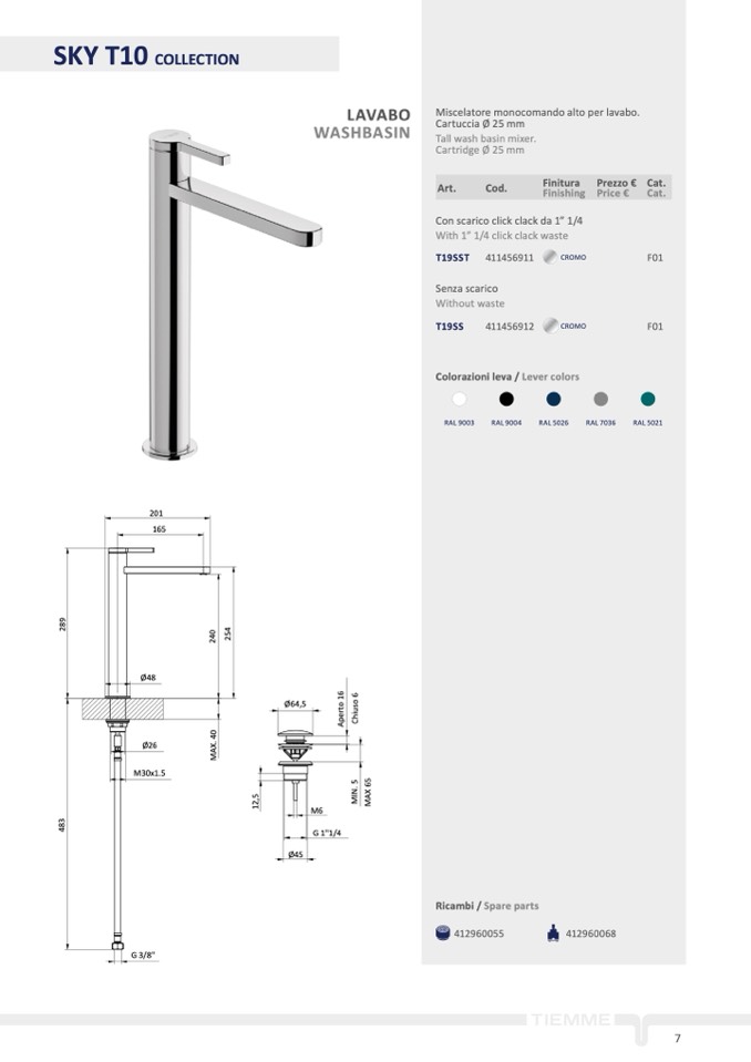 Colorazioni leva / Lever colors