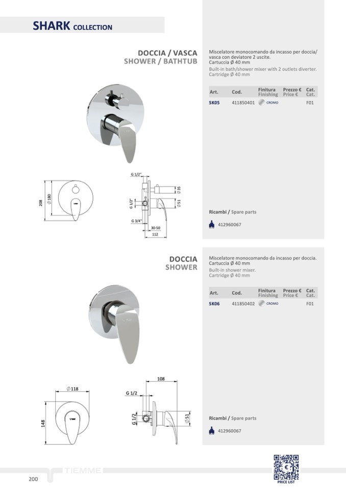 Built-in shower mixer.
