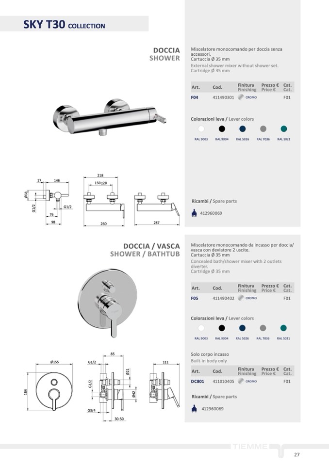 Colorazioni leva / Lever colors