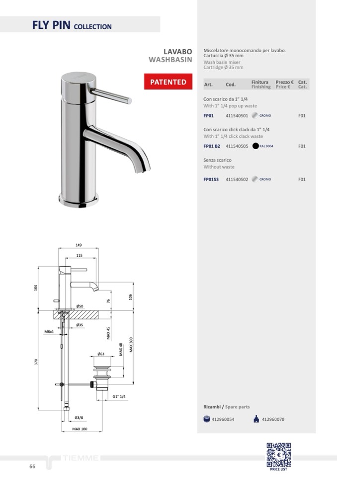 Miscelatore monocomando per lavabo.