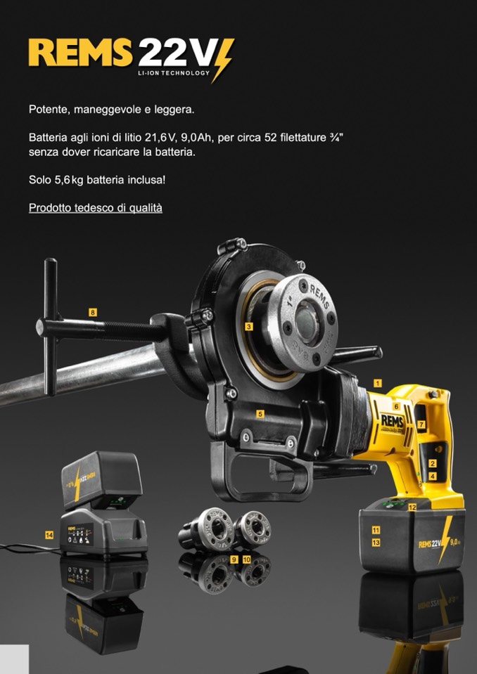 Batteria agli ioni di litio 21,6V, 9,0Ah, per circa 52 filettature 3⁄4"