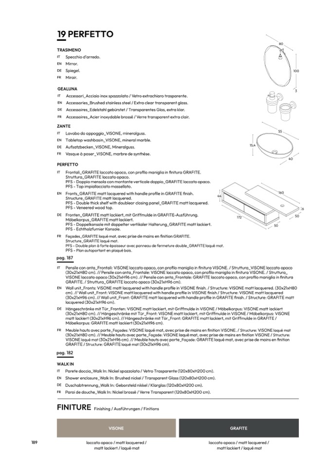 cm). // Wall unit_Front: VISONE matt lacquered with handle pro