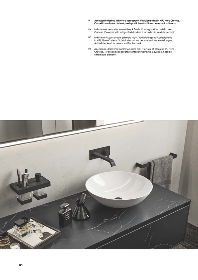 Indissima accessories in matt black finish. Coating and top in HPL Ner