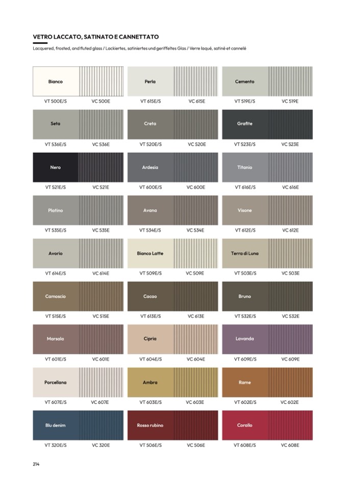 Lacquered, frosted, and fluted glass / Lackiertes, satiniertes und geriffeltes Glas / Verre laqué, satiné et cannel
