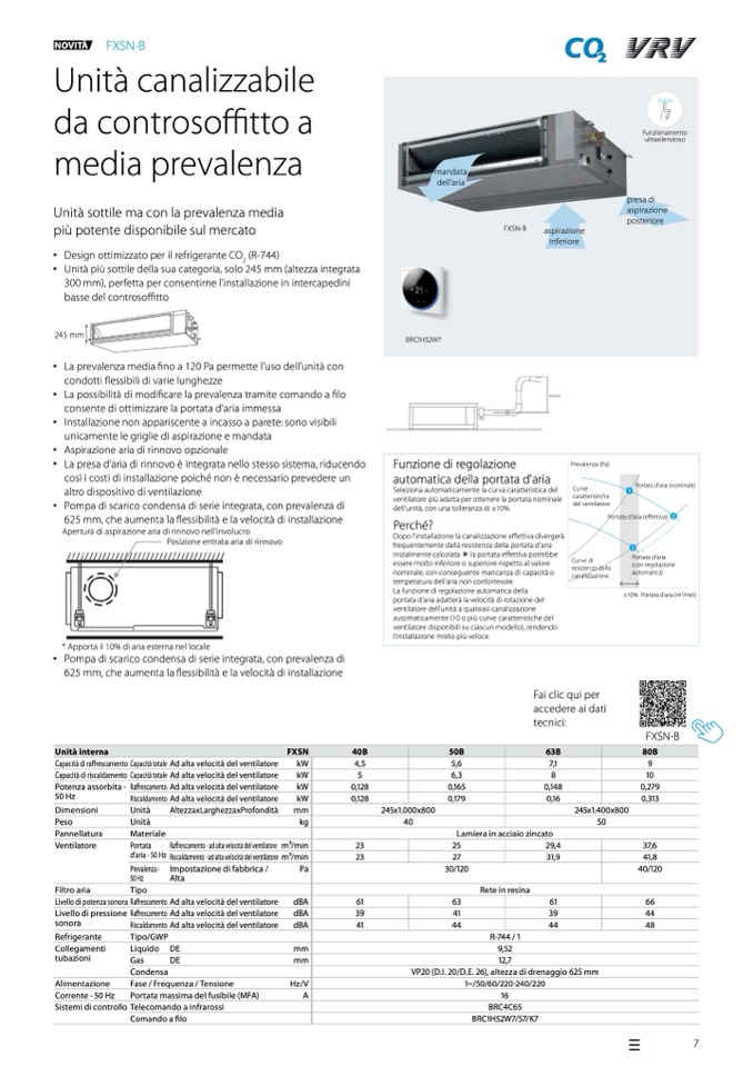 fino a 120 Pa permette l’uso dell’unità con