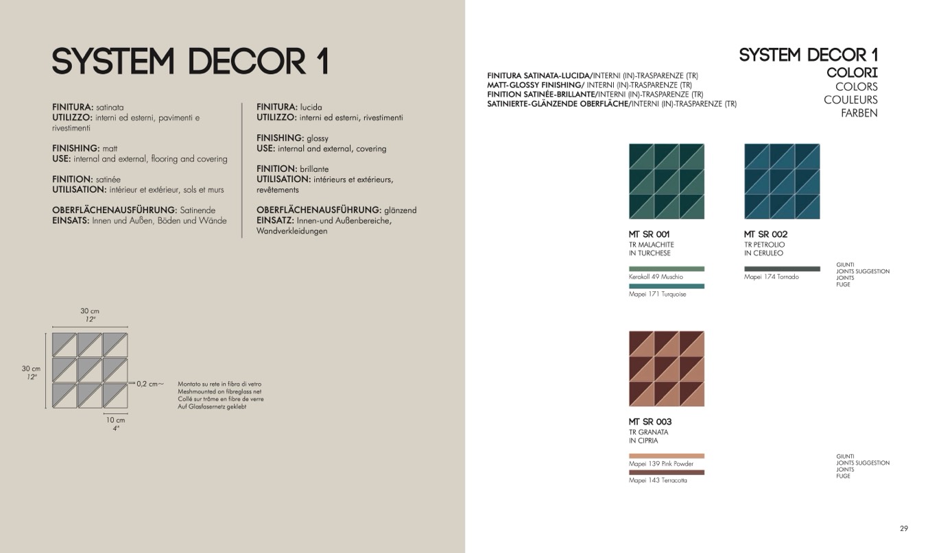 SATINIERTE-GLÄNZENDE OBERFLÄCHE/INTERNI (IN)-TRASPARENZE (TR)