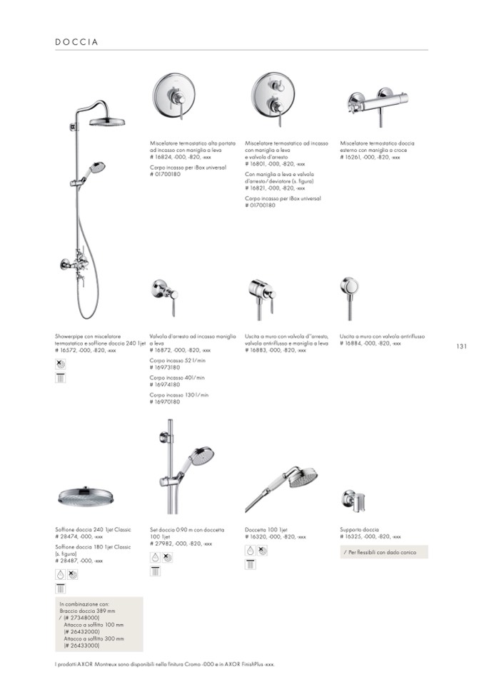 I prodotti AXOR Montreux sono disponibili nella finitura Cromo -000 e in AXOR FinishPlus -xxx.