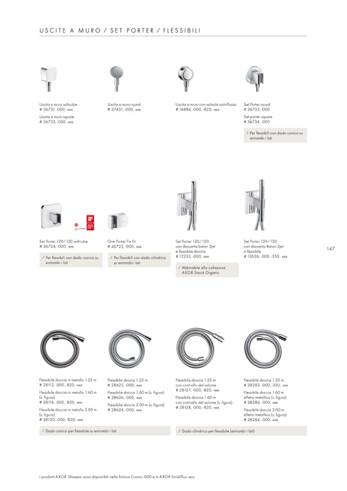 I prodotti AXOR Showers sono disponibili nella finitura Cromo -000 e in AXOR FinishPlus -xxx.