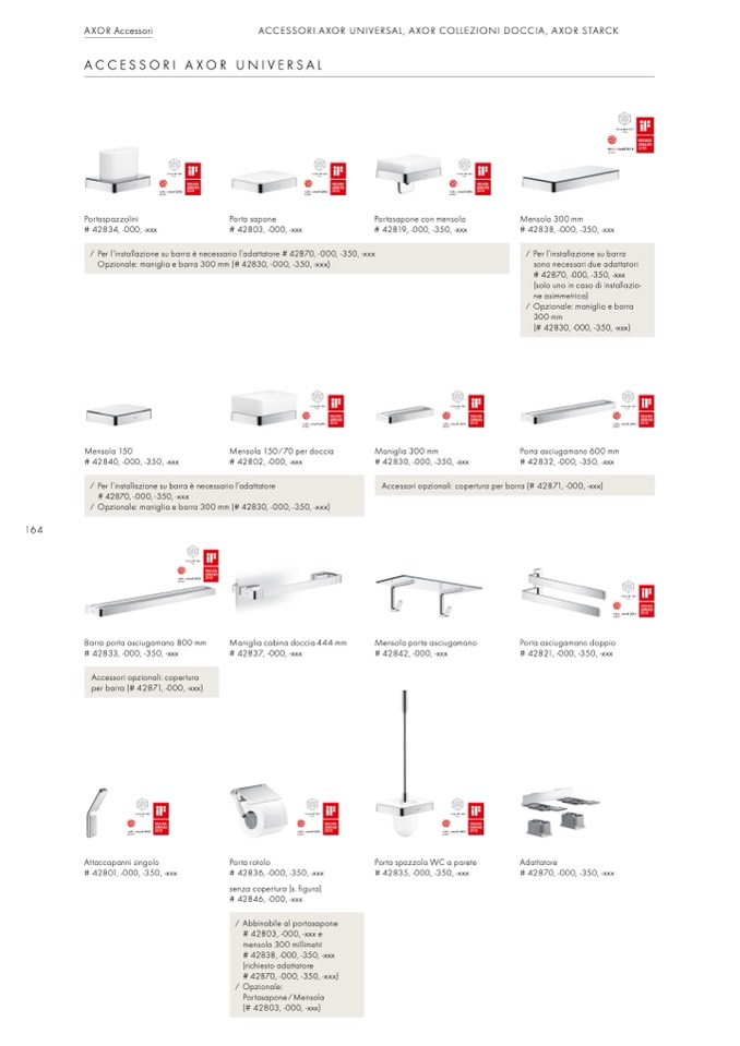 ACCESSORI AXOR UNIVERSAL, AXOR COLLEZIONI DOCCIA, AXOR STARCK