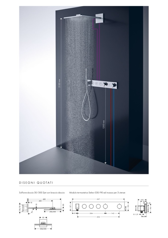 Soffione doccia 30 ⁄ 300 2jet con braccio doccia