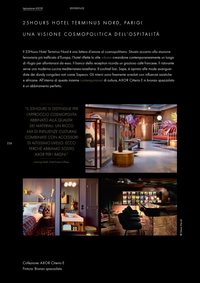 e africane. All’interno di questo insieme contemporaneo di cultura, AXOR Citterio E in bronzo spazzolato