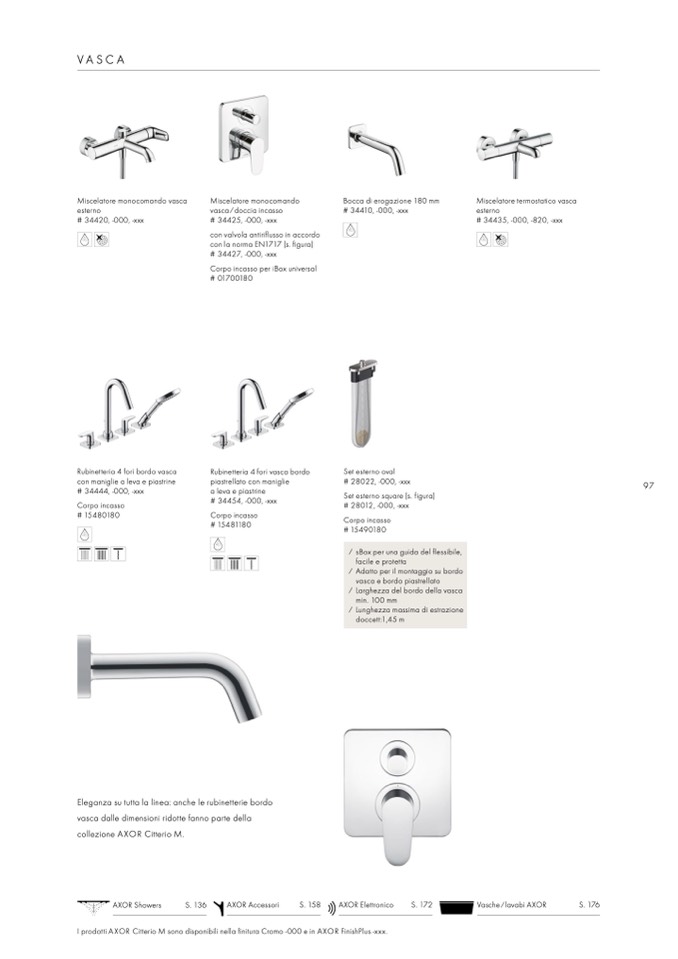I prodotti AXOR Citterio M sono disponibili nella finitura Cromo -000 e in AXOR FinishPlus -xxx.