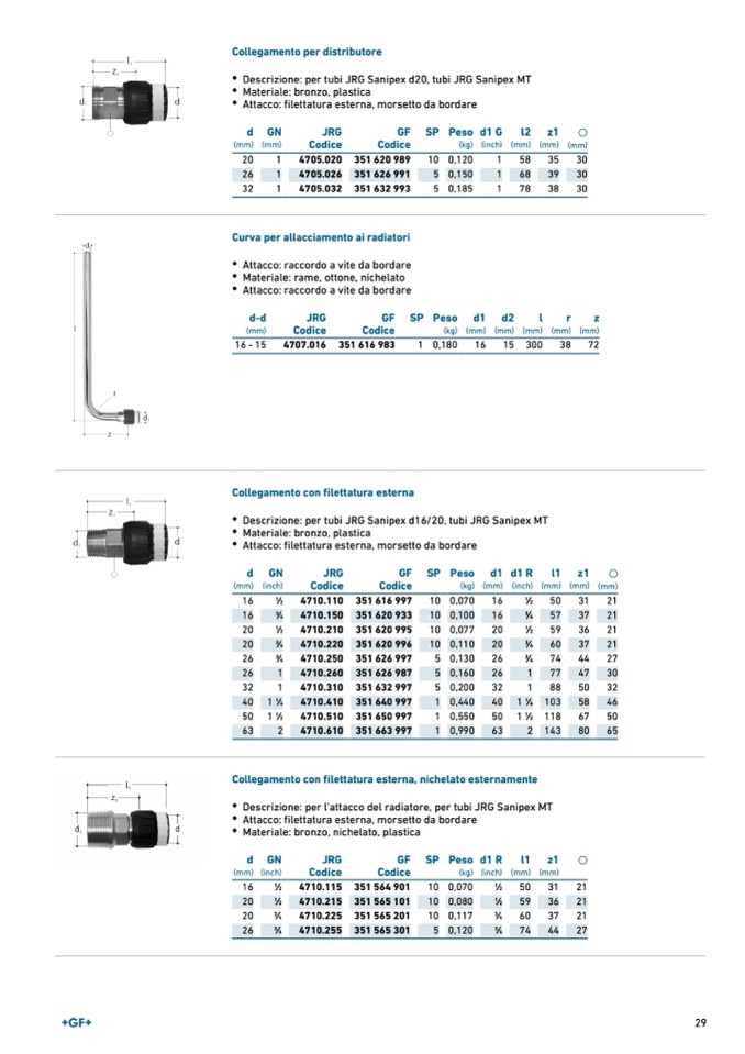 Descrizione: per l'attacco del radiatore, per tubi JRG Sanipex MT