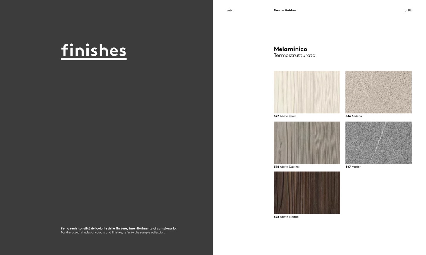 Per la reale tonalità dei colori e delle finiture, fare riferimento al campionario.