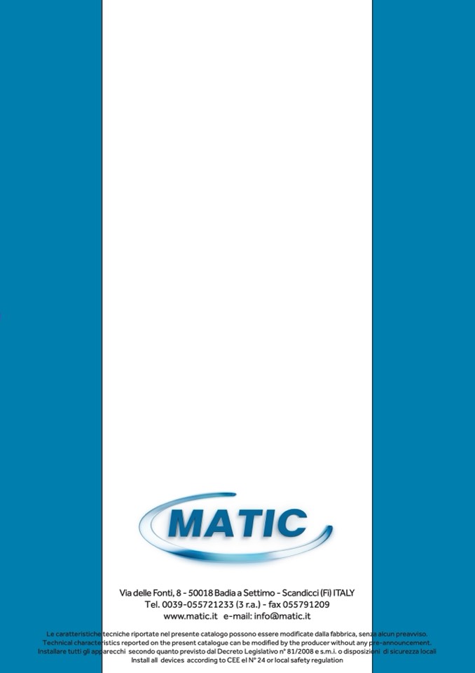 Technical characteristics reported on the present catalogue can be modified by the producer without any pre-announcement.