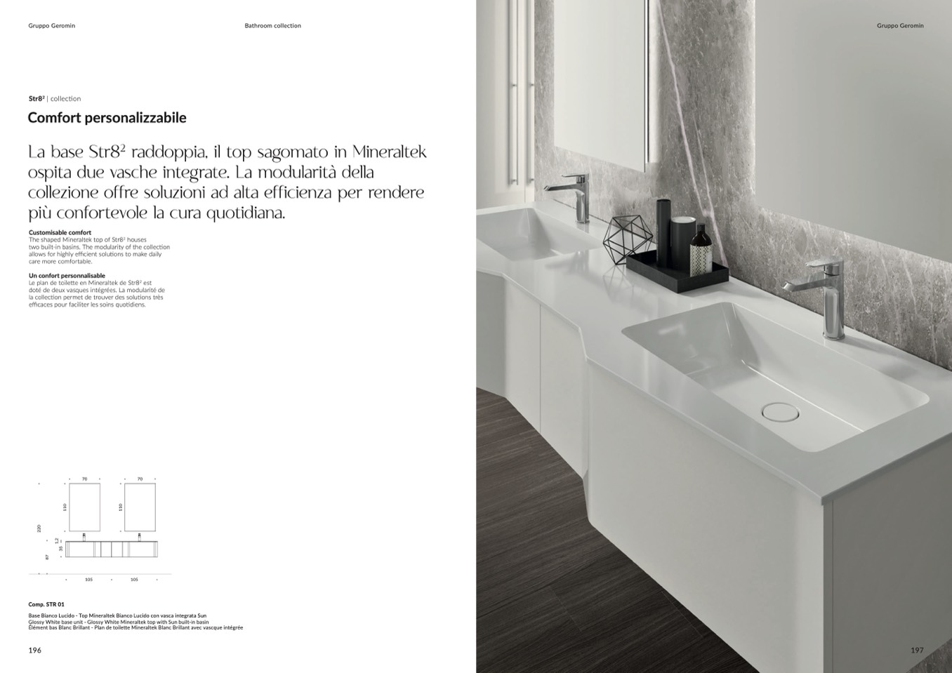 two built-in basins. The modularity of the collection