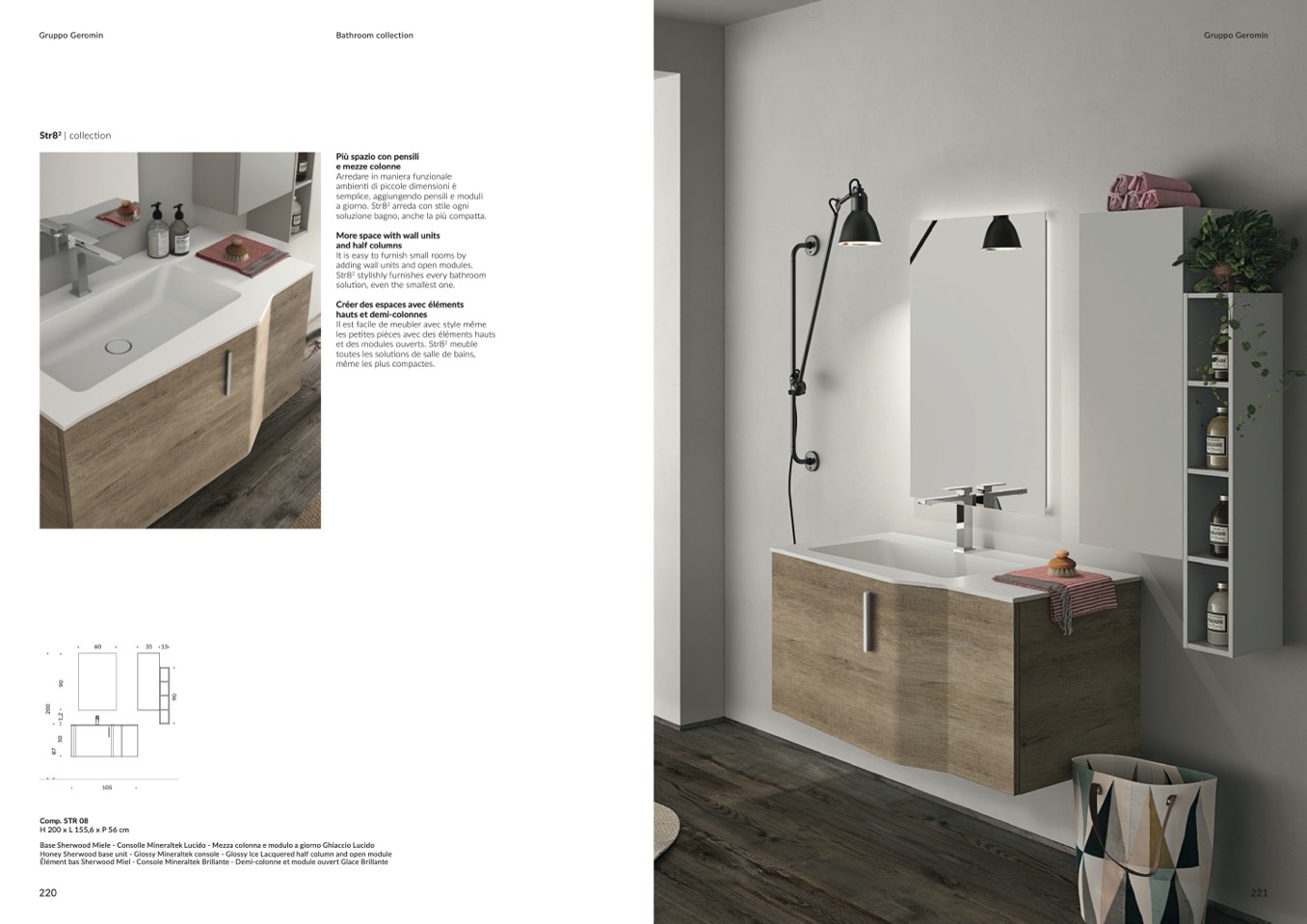Base Sherwood Miele - Consolle Mineraltek Lucido - Mezza colonna e modulo a giorno Ghiaccio Lucido