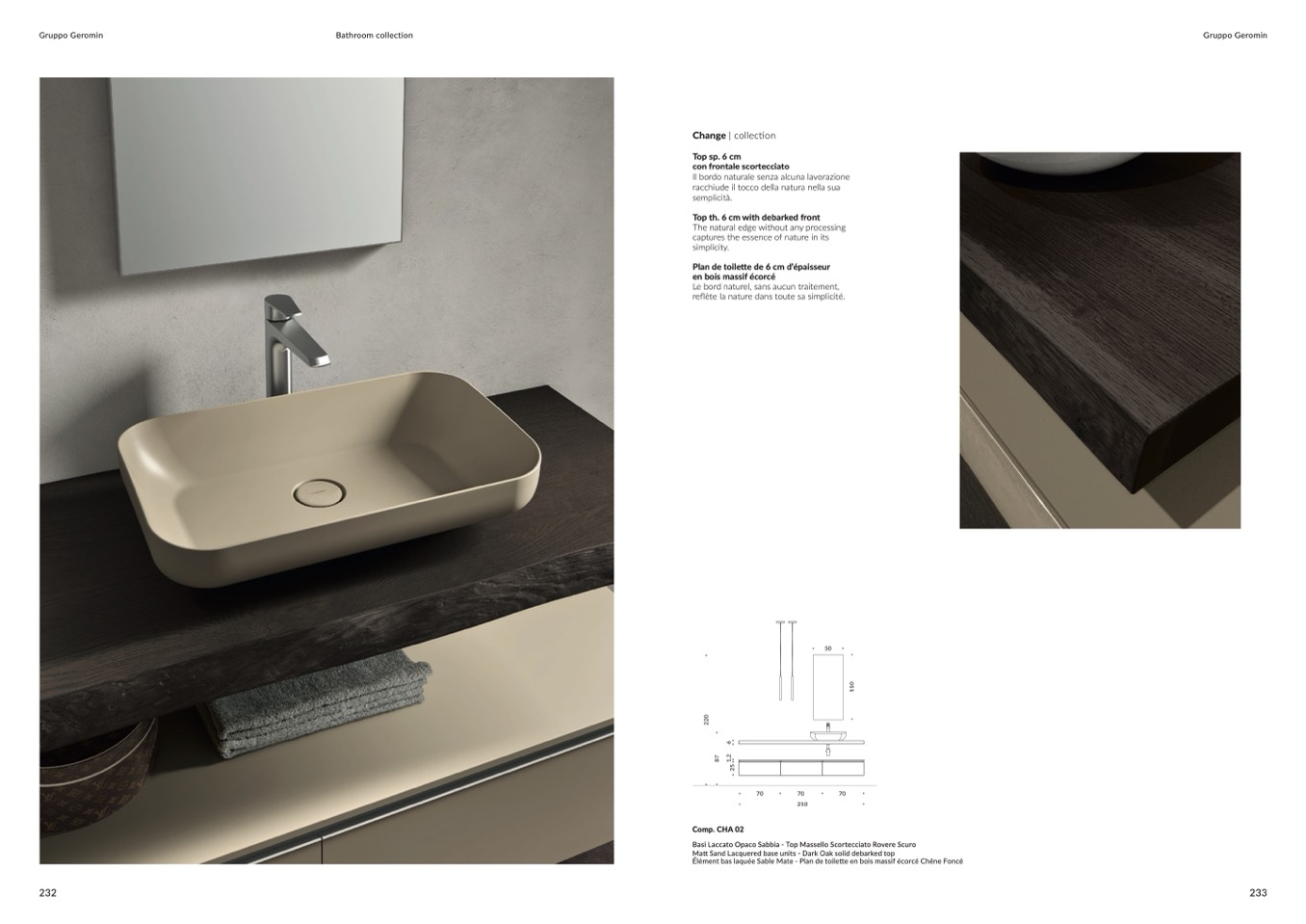 Basi Laccato Opaco Sabbia - Top Massello Scortecciato Rovere Scuro
