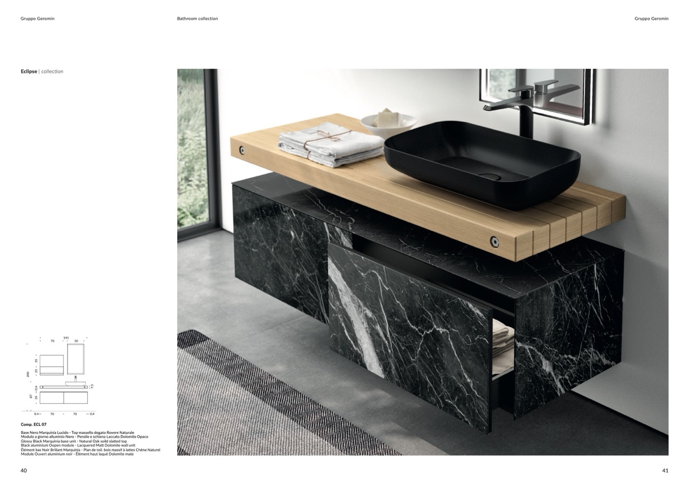 Base Nero Marquinia Lucido - Top massello dogato Rovere Naturale