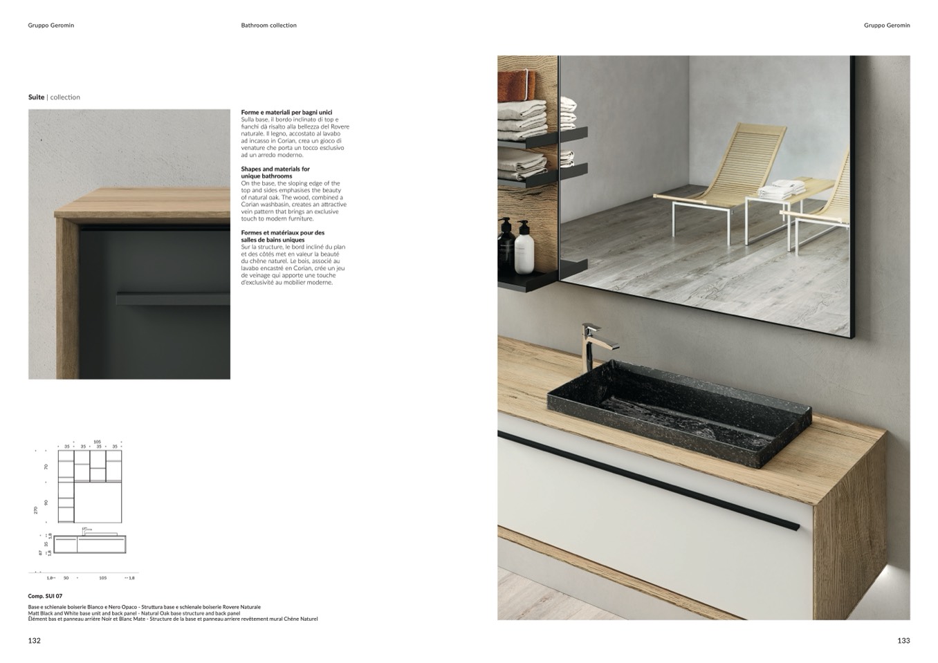 Base e schienale boiserie Bianco e Nero Opaco - Struttura base e schienale boiserie Rovere Naturale