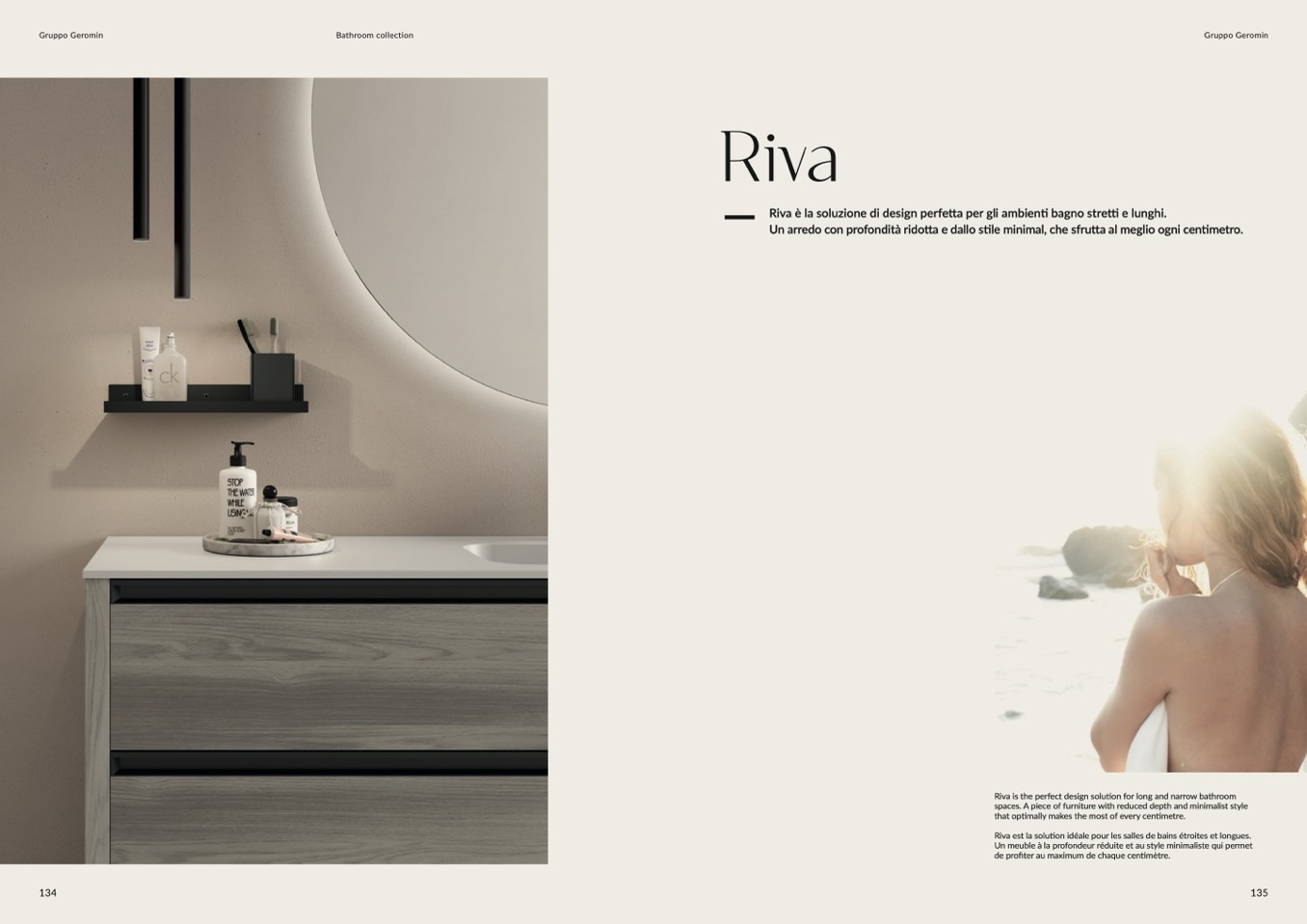 Riva est la solution idéale pour les salles de bains étroites et longues.