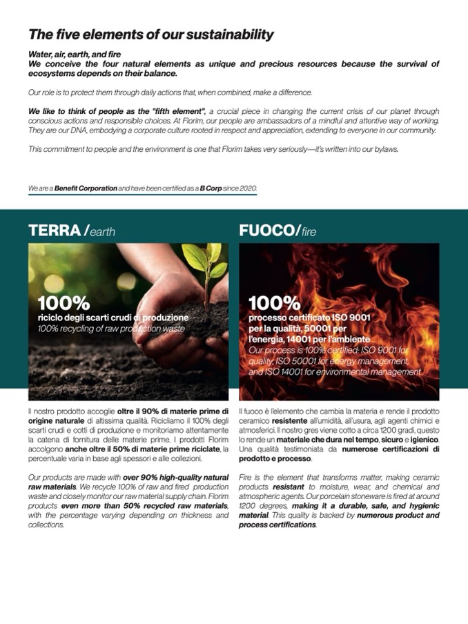 This commitment to people and the environment is one that Florim takes very seriously—it’s written into our bylaws
