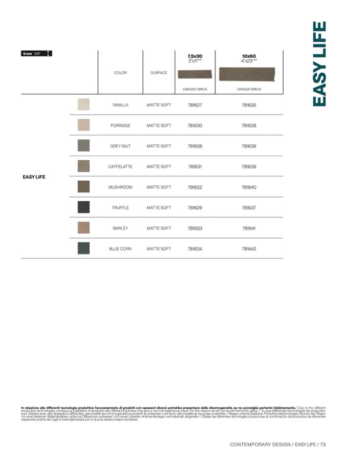 In relazione alle differenti tecnologie produttive l’accostamento di prodotti con spessori diversi potrebbe presentare delle disomogeneità, se ne sconsiglia pertanto l’abbinamento./ Due to the different