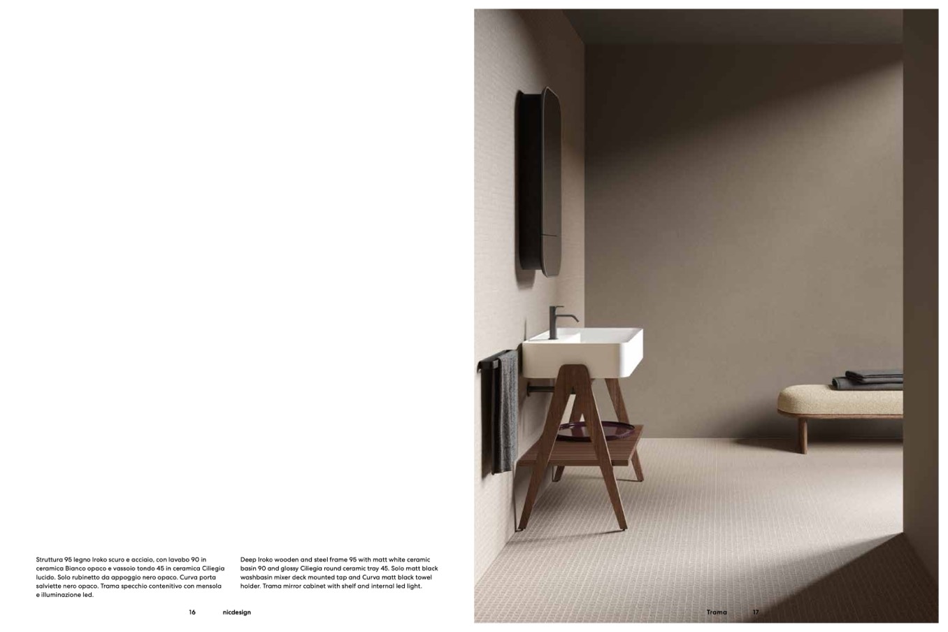 Struttura 95 legno Iroko scuro e acciaio, con lavabo 90 in