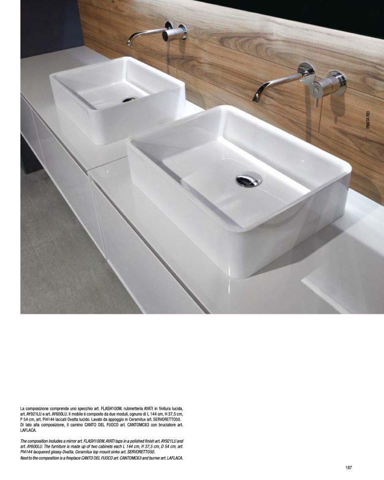 P 54 cm, art. PI4144 laccati Ovatta lucido. Lavabi da appoggio in Ceramilux art. SERVORETTO50.