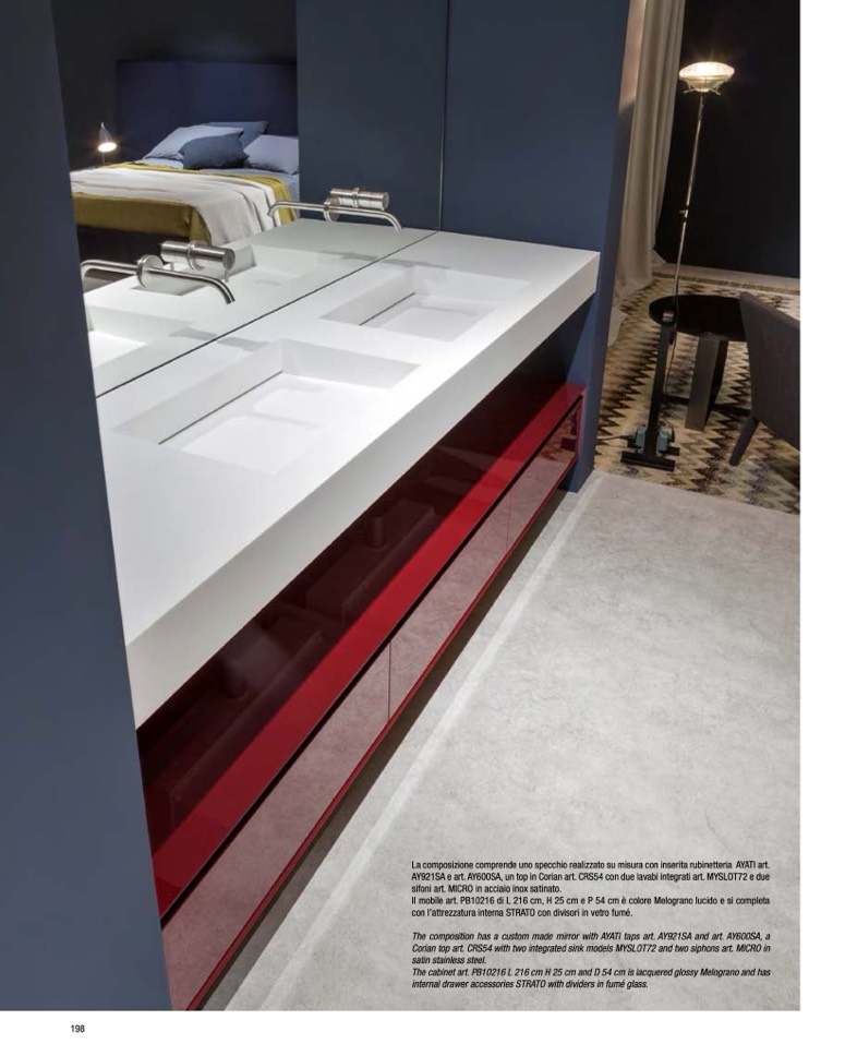 AY921SA e art. AY600SA, un top in Corian art. CRS54 con due lavabi integrati art. MYSLOT72 e due
