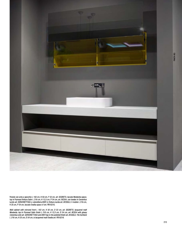 lucido art. SERVORETTO63 e rubinetteria AYATI in finitura lucida art. AY200LU. Il mobile L 216 cm,