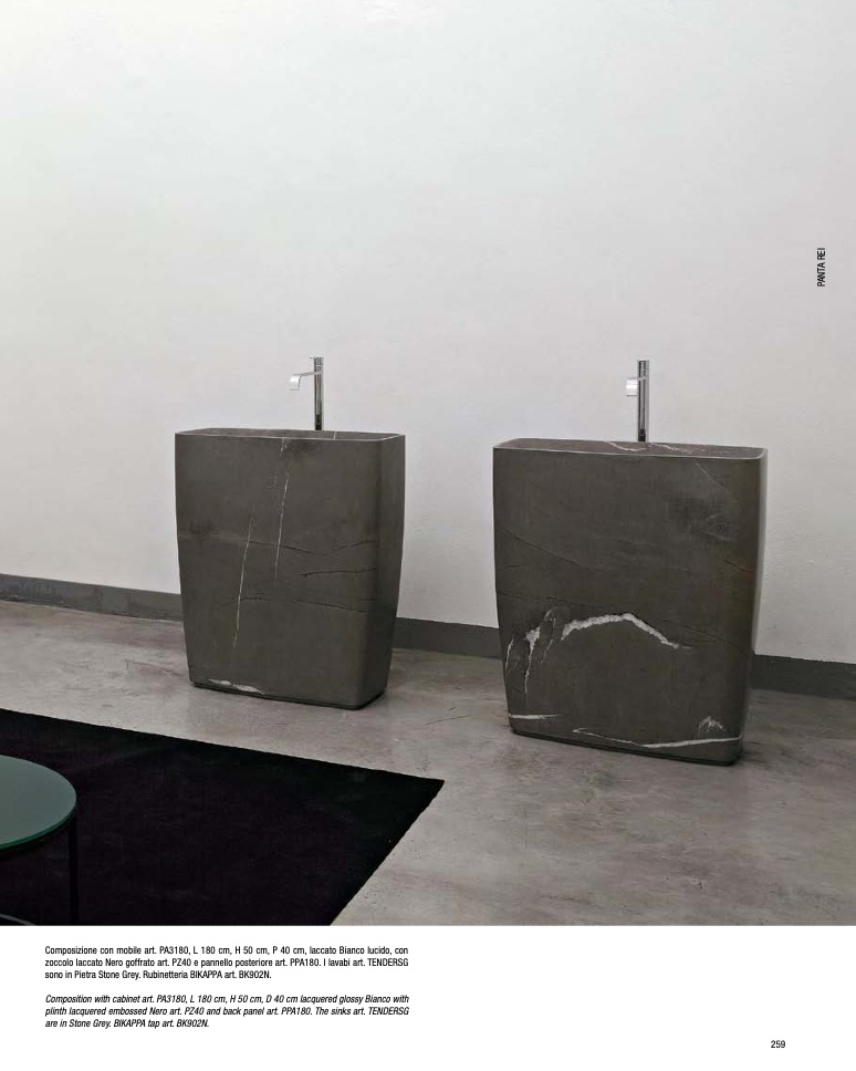plinth lacquered embossed Nero art. PZ40 and back panel art. PPA180. The sinks art. TENDERSG