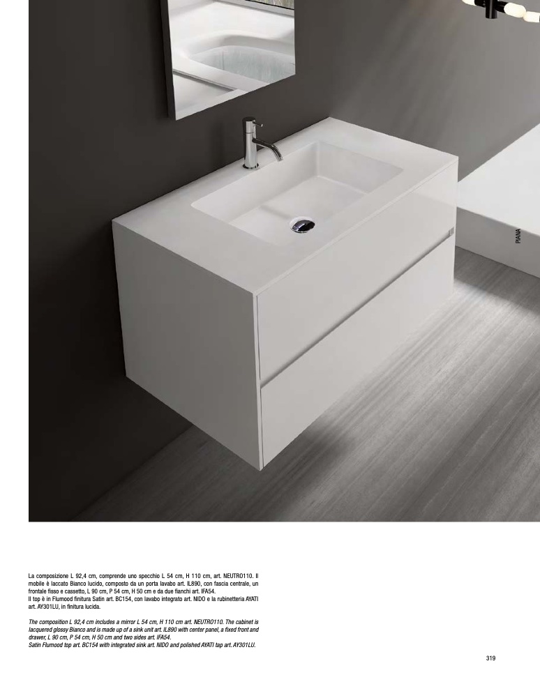 The composition L 92,4 cm includes a mirror L 54 cm, H 110 cm art. NEUTRO110. The cabinet is