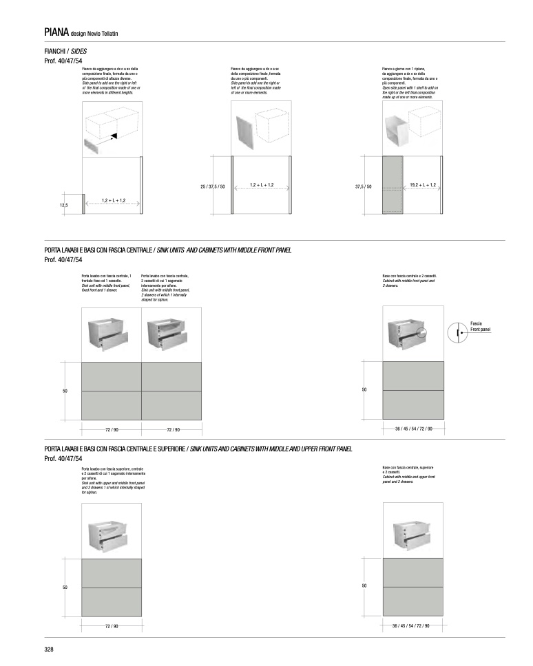 PORTA LAVABI E BASI CON FASCIA CENTRALE E SUPERIORE / SINK UNITS AND CABINETS WITH MIDDLE AND UPPER FRONT PANEL
