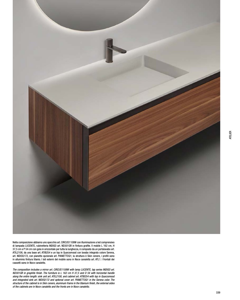 ATIL2108, da una base art. ATIB254 e un top in Quarzomood con lavabo integrato colore Serena,