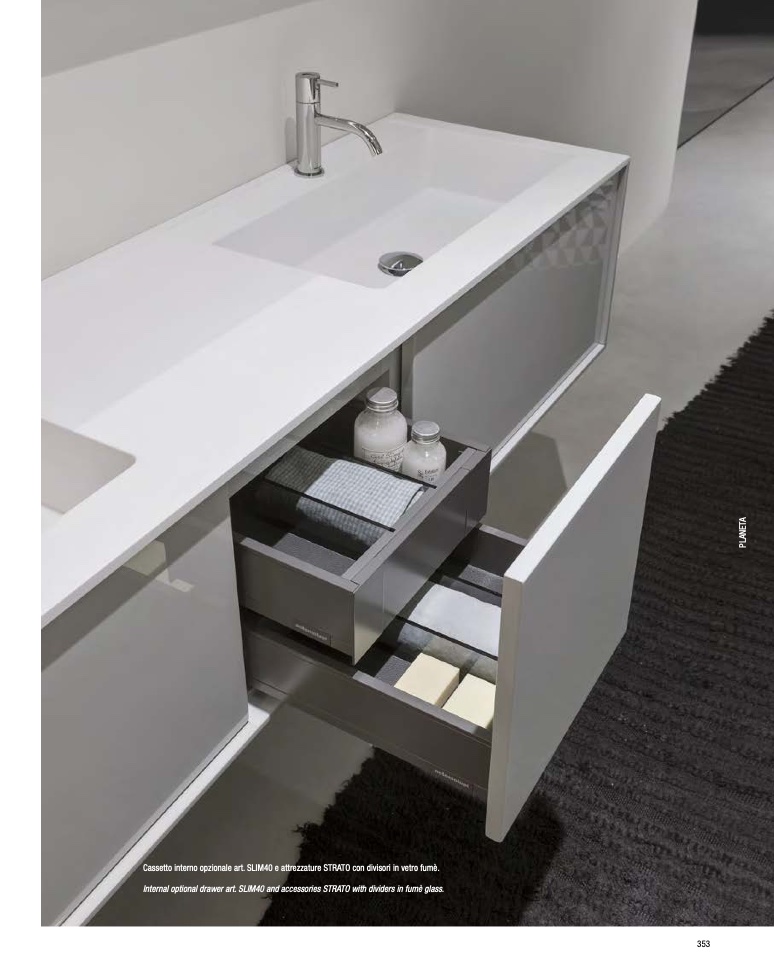 Internal optional drawer art. SLIM40 and accessories STRATO with dividers in fumè glass.