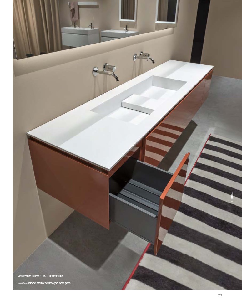 STRATO, internal drawer accessory in fumé glass.