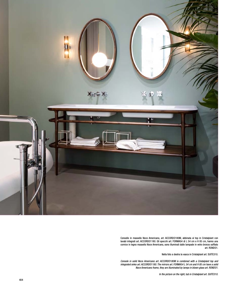 integrated sinks art. ACCORDO1180. The mirrors art. FORMA54 L 54 cm and H 85 cm have a solid