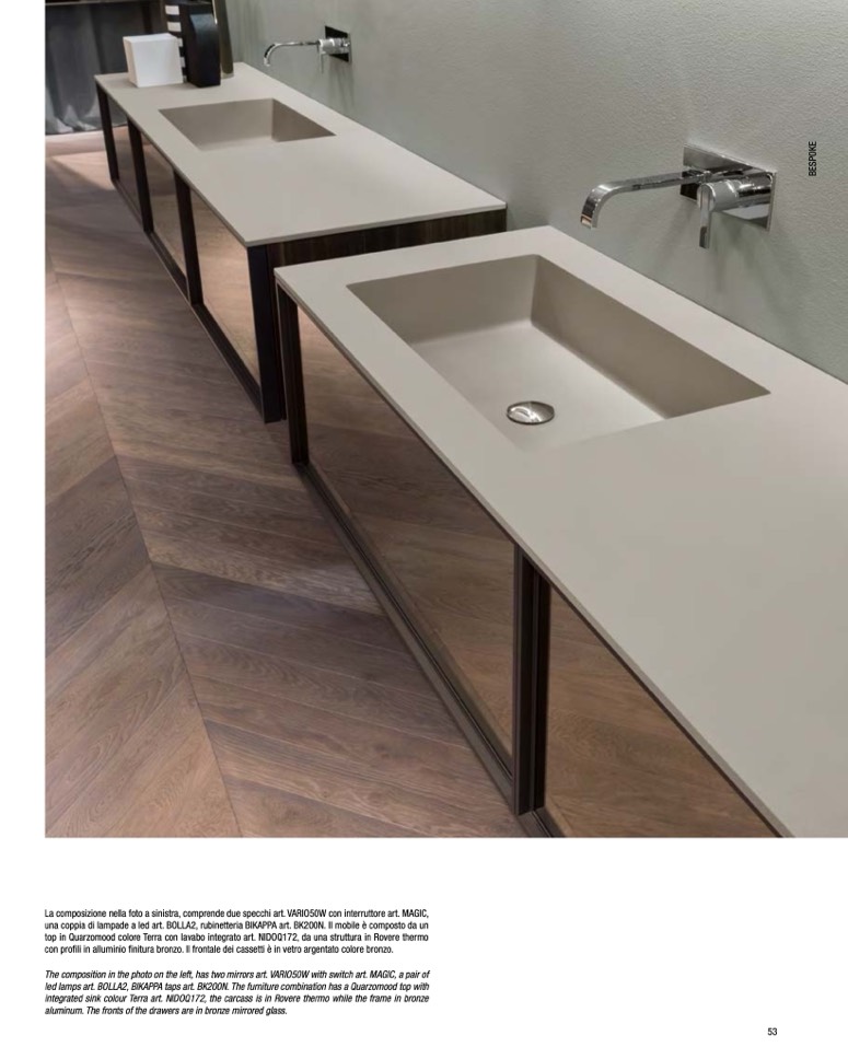 led lamps art. BOLLA2, BIKAPPA taps art. BK200N. The furniture combination has a Quarzomood top with