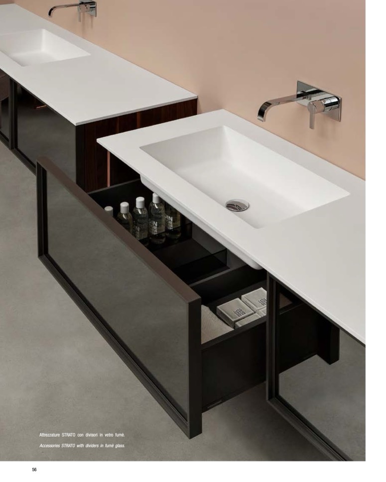Attrezzature STRATO con divisori in vetro fumè.