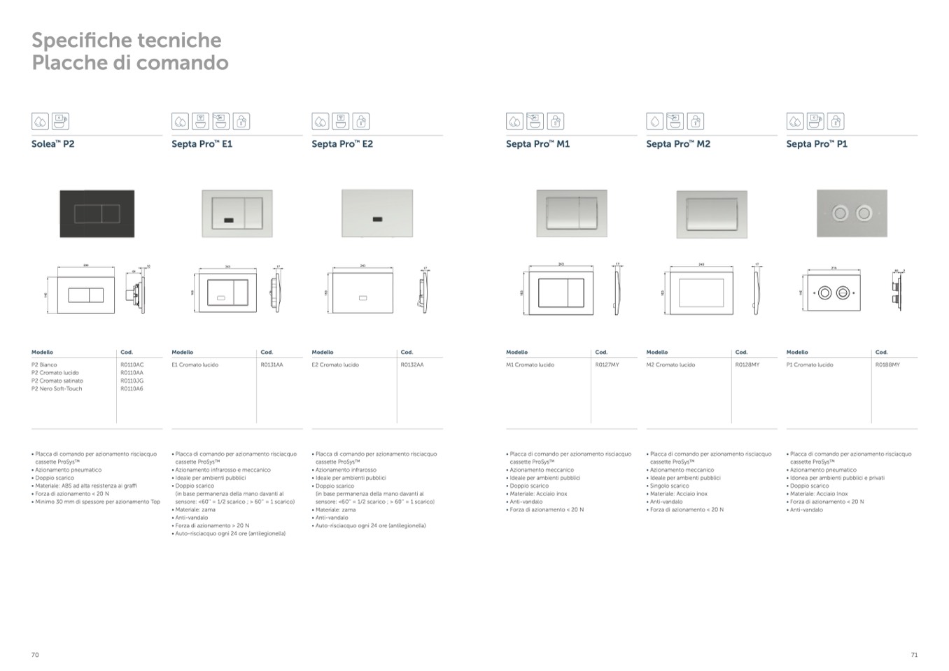 • Placca di comando per azionamento risciacquo