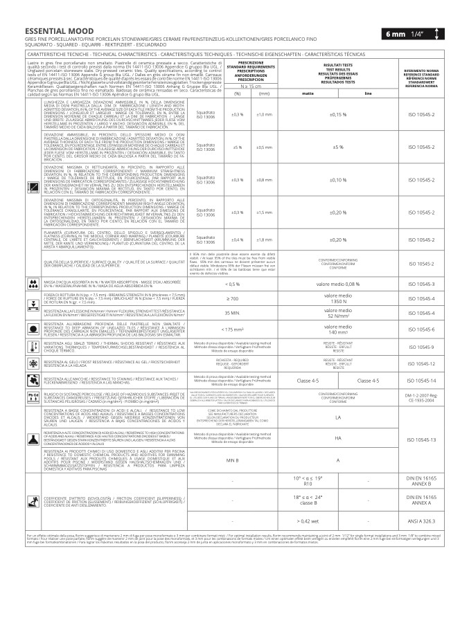 CARATTERISTICHE TECNICHE - TECHNICAL CHARACTERISTICS - CARACTERISTIQUES TECHNIQUES - TECHNISCHE EIGENSCHAFTEN - CARACTERÍSTICAS TÉCNICA