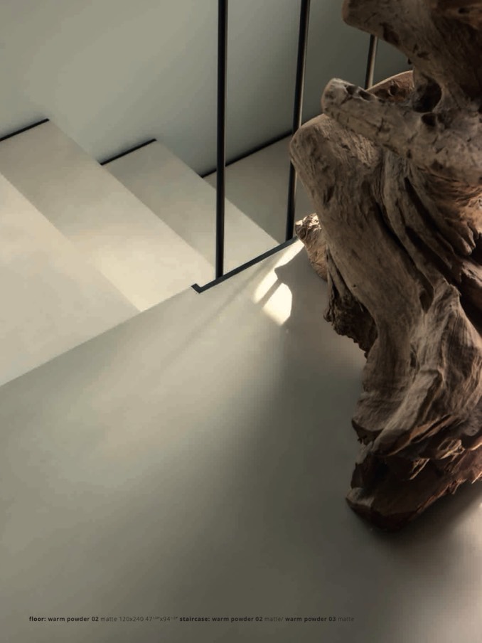 r: warm powder 02 matte 120x240 471/4”x941/2” staircase: warm powder 02 matte/ warm powder 03 matte