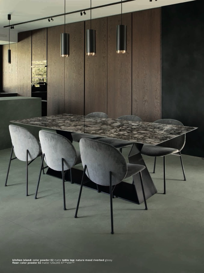 kitchen island: color powder 02 matte table top: nature mood riverbed gloss