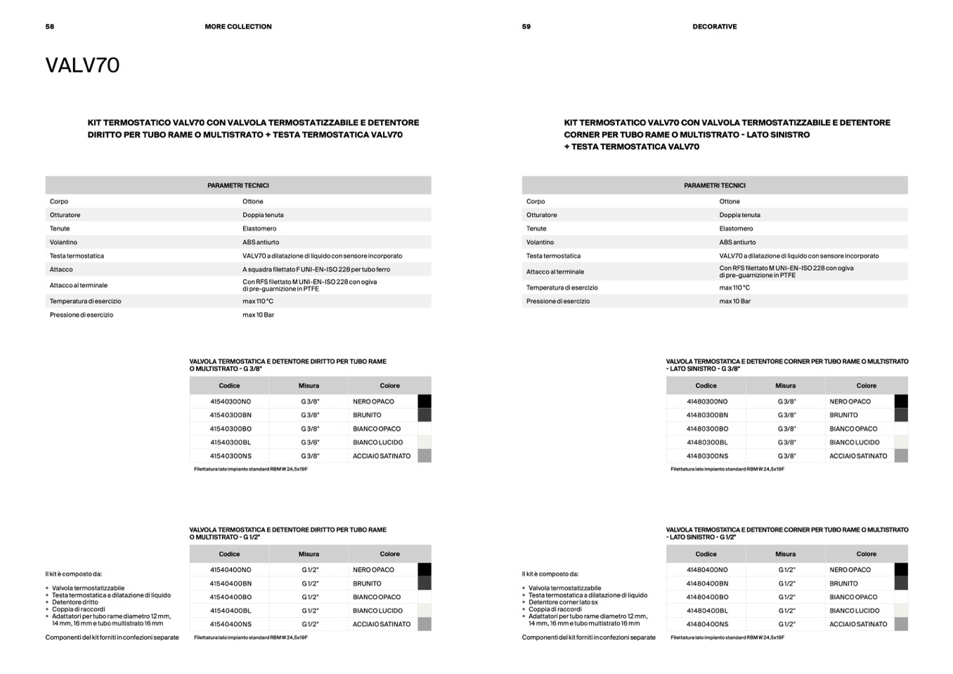 VALVOLA TERMOSTATICA E DETENTORE DIRITTO PER TUBO RAME
