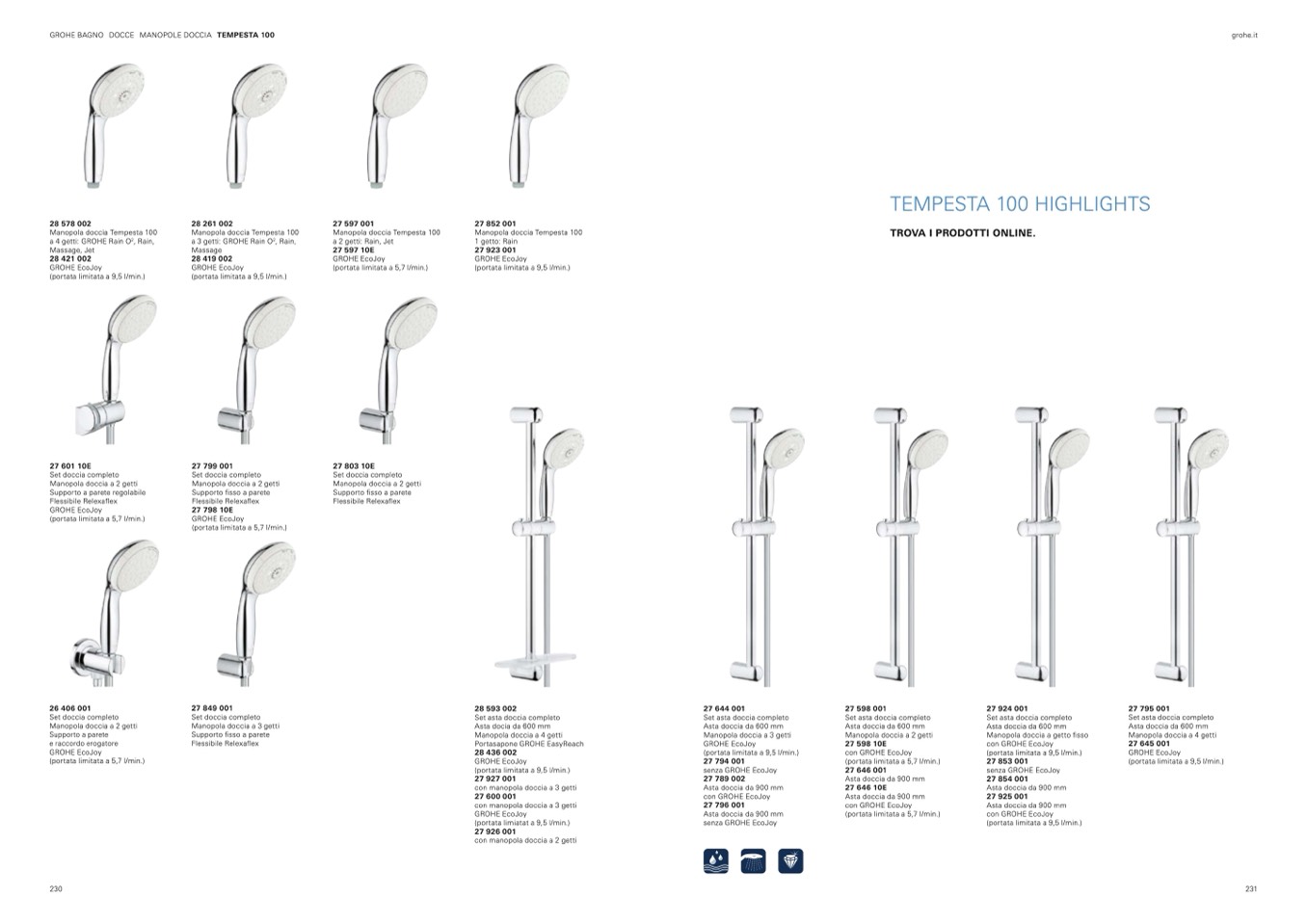 GROHE BAGNO DOCCE MANOPOLE DOCCIA TEMPESTA 100